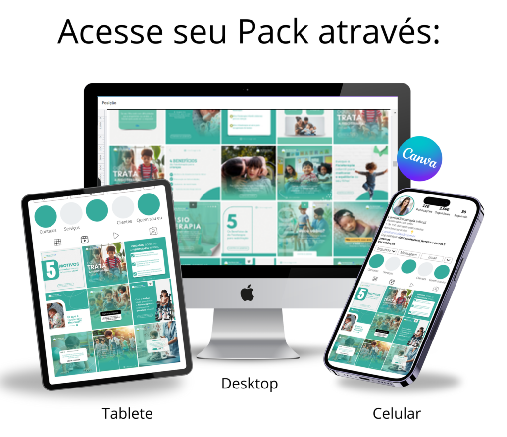 Sim! Basta você baixar o aplicativo do Canva e acessar o Pack Fisioterapia Infantil, por lá para criar suas postagens direto pelo seu celular.